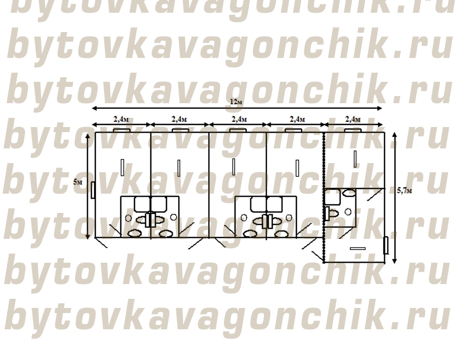 Блок –модуль из  БК 5,0*2,4*2,5 -4шт., и БК 5,7*2,4*2,5 -1шт.